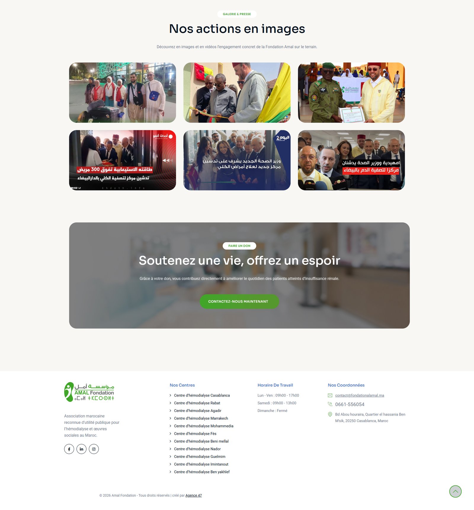 AMAL est une fondation à but non lucratif. Elle a été crée en 2008, son objectif est de servir les malades atteints d’insuffisance rénale chronique.
