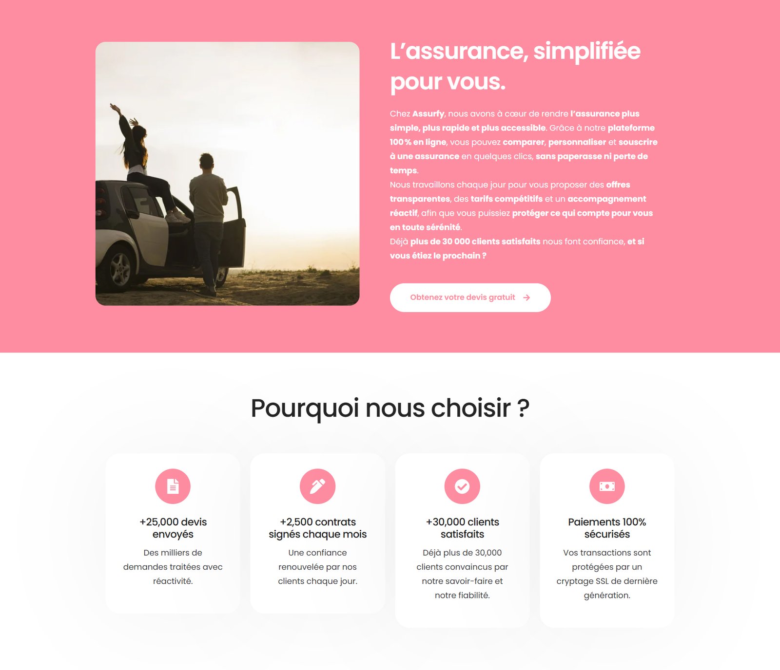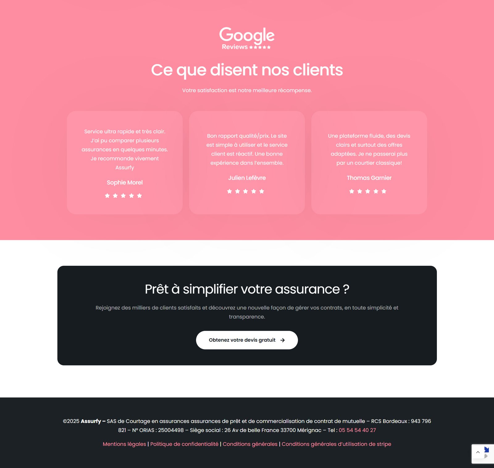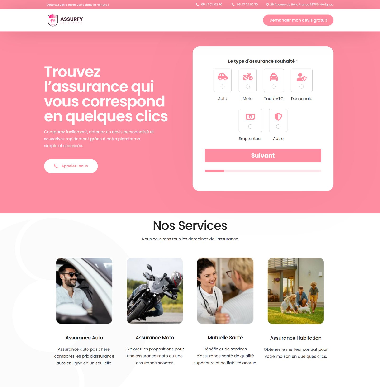 Le site d’Assurfy peinait à générer des leads qualifiés dans un marché à forte demande en assurance en France et dans les DOM-TOM. La plateforme n’apparaissait pas efficacement sur les requêtes stratégiques liées à son activité, telles que “assurance auto”, “devis assurance en ligne” ou “courtier assurance France”, ni sur les déclinaisons locales spécifiques aux territoires.