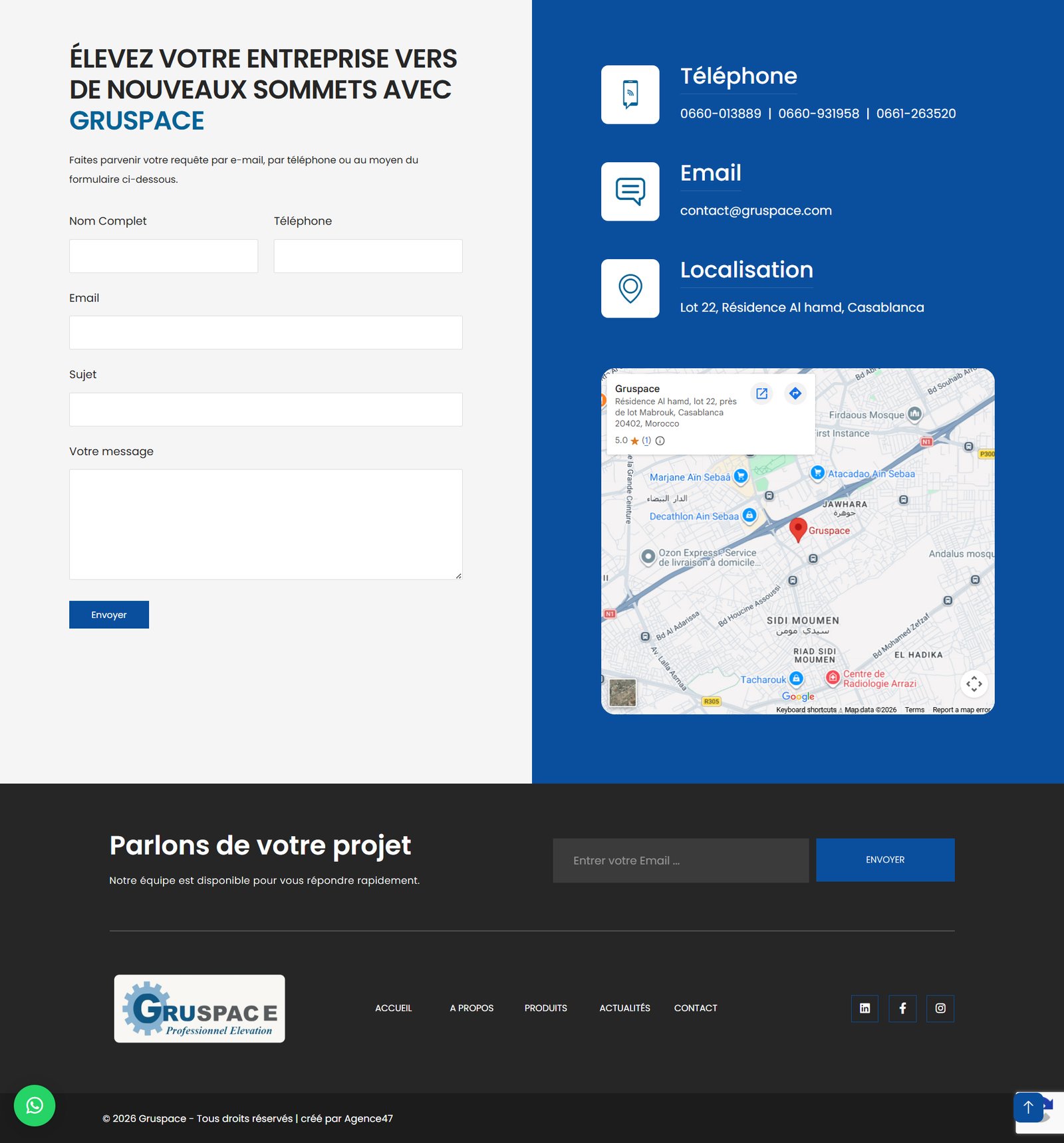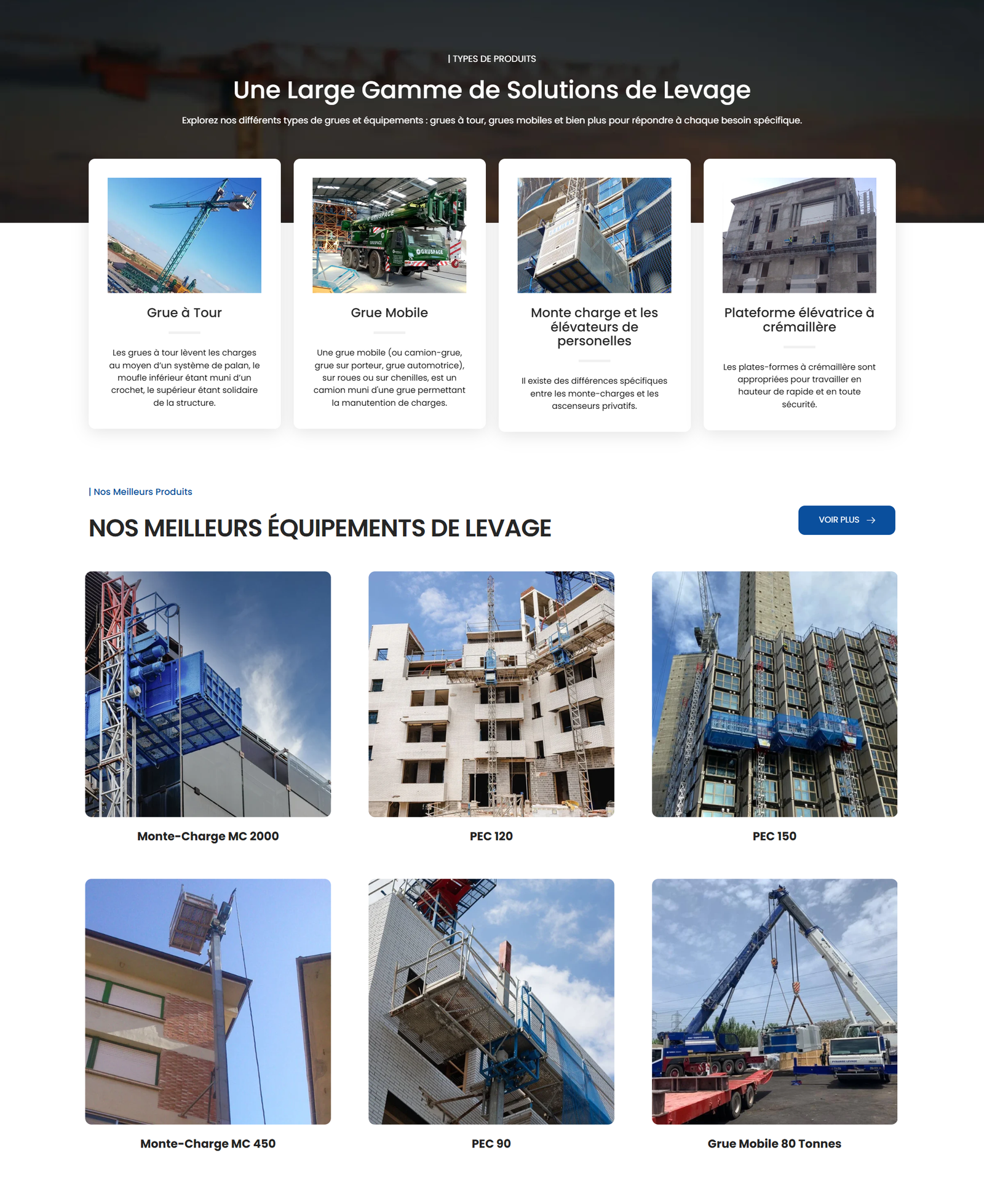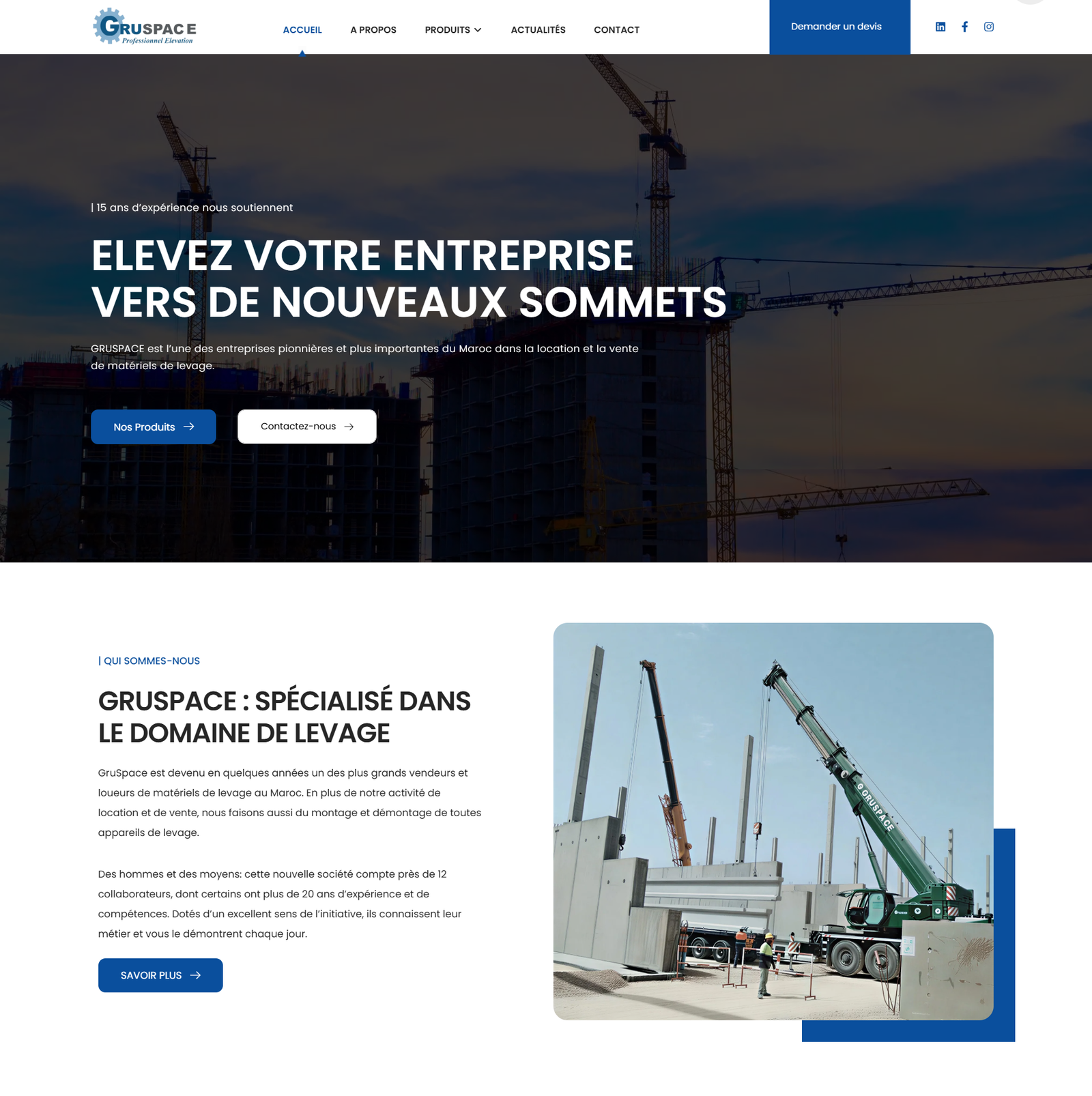 Gruspace ne disposait pas d’une plateforme digitale structurée pour présenter ses équipements de levage, ce qui limitait la visibilité de ses produits et la génération de demandes commerciales en ligne.