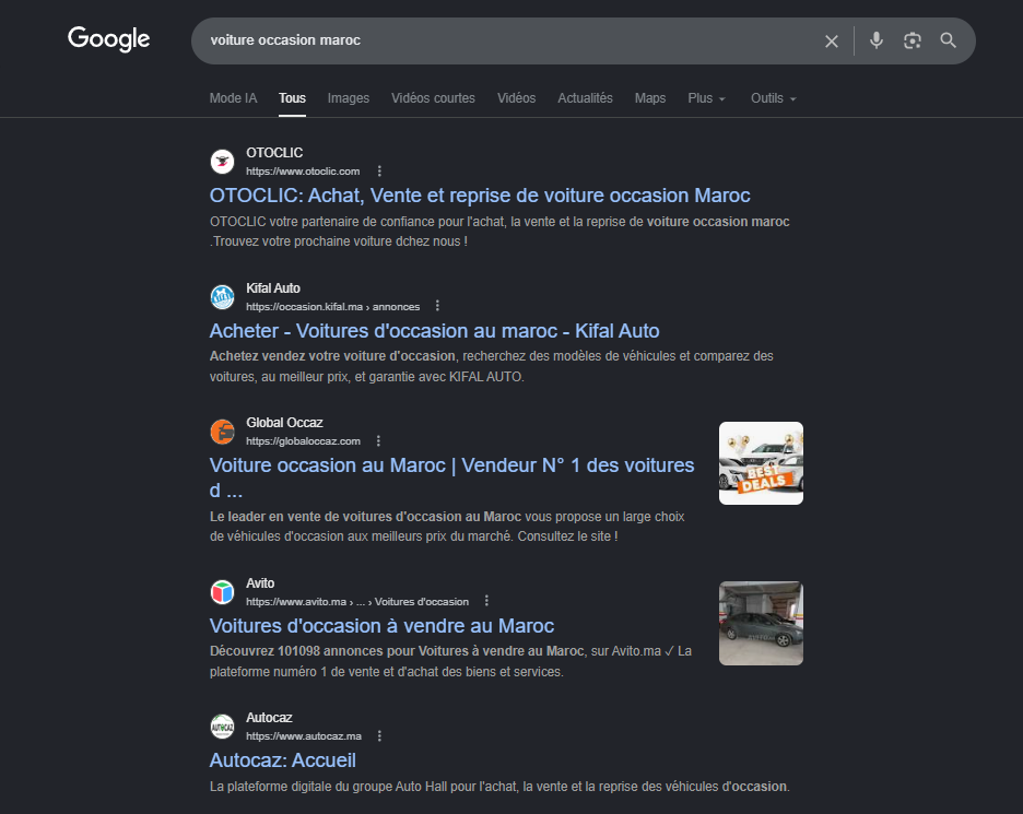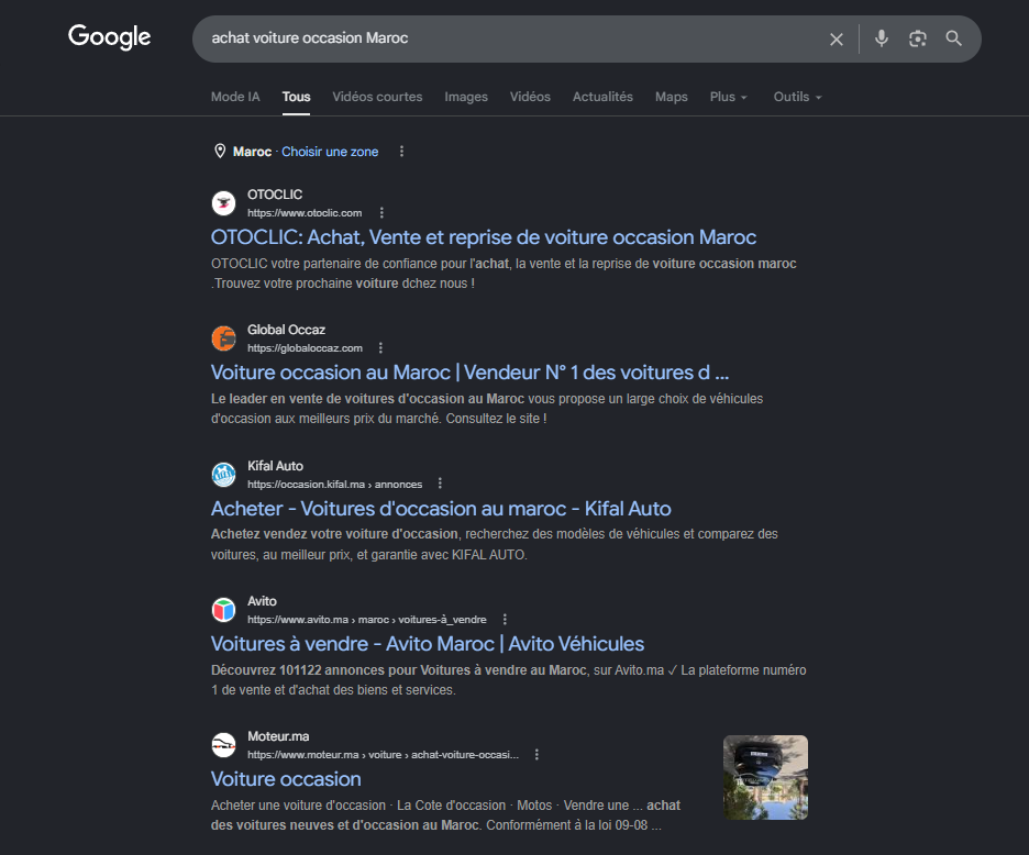 Positionnez votre plateforme de voiture ocasion en tête des résultats Google au Maroc
